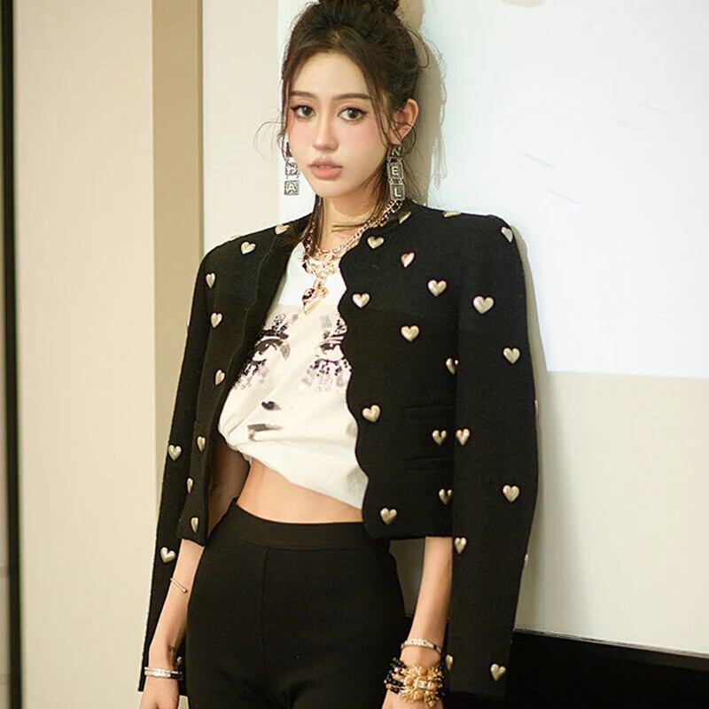 Zwart Love ツイード Jasje Vrouwen Kraal 3d Chique Wollen Herfst 冬用アウター ヴィンテージ ans ベスト Pak ウィンター 冬物 ビンテージ | peak