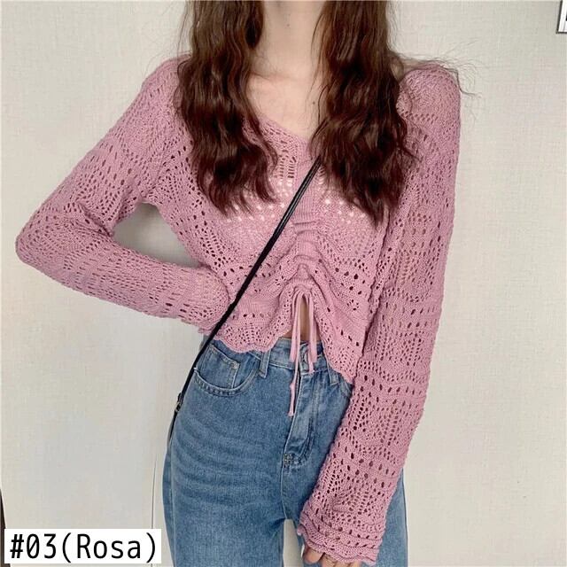Gestrickte Kittel Frauen schicke Kordel zug lang ärmel ige Aushöhlung V-Ausschnitt süße Bluse Mode loss 原宿 Y2k プルオーバー weibliche トップス かわいい | peak